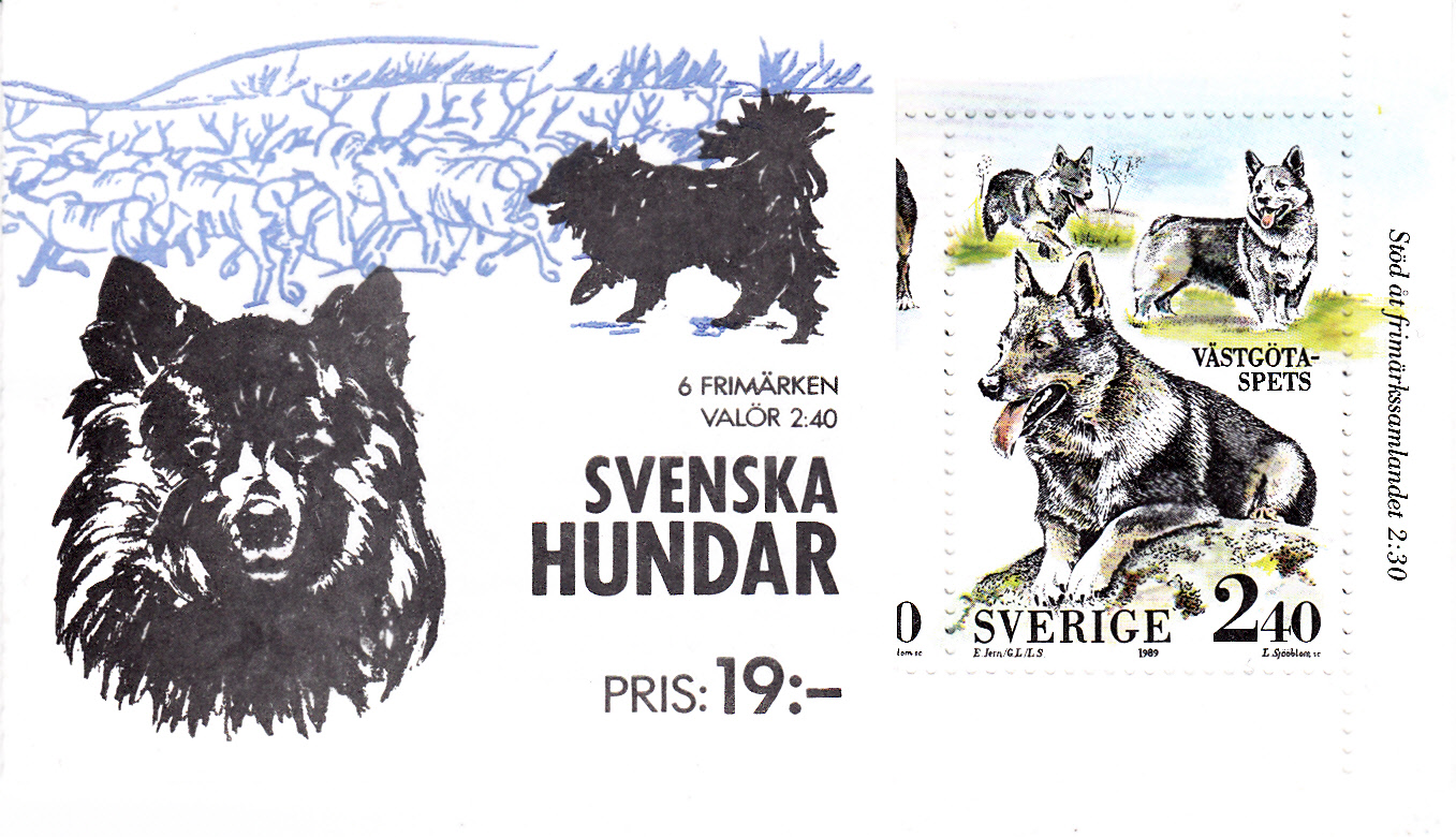 Diese Marke aus Schweden (MiNr 1571) zeigt drei Bilder des Västgötaspets.