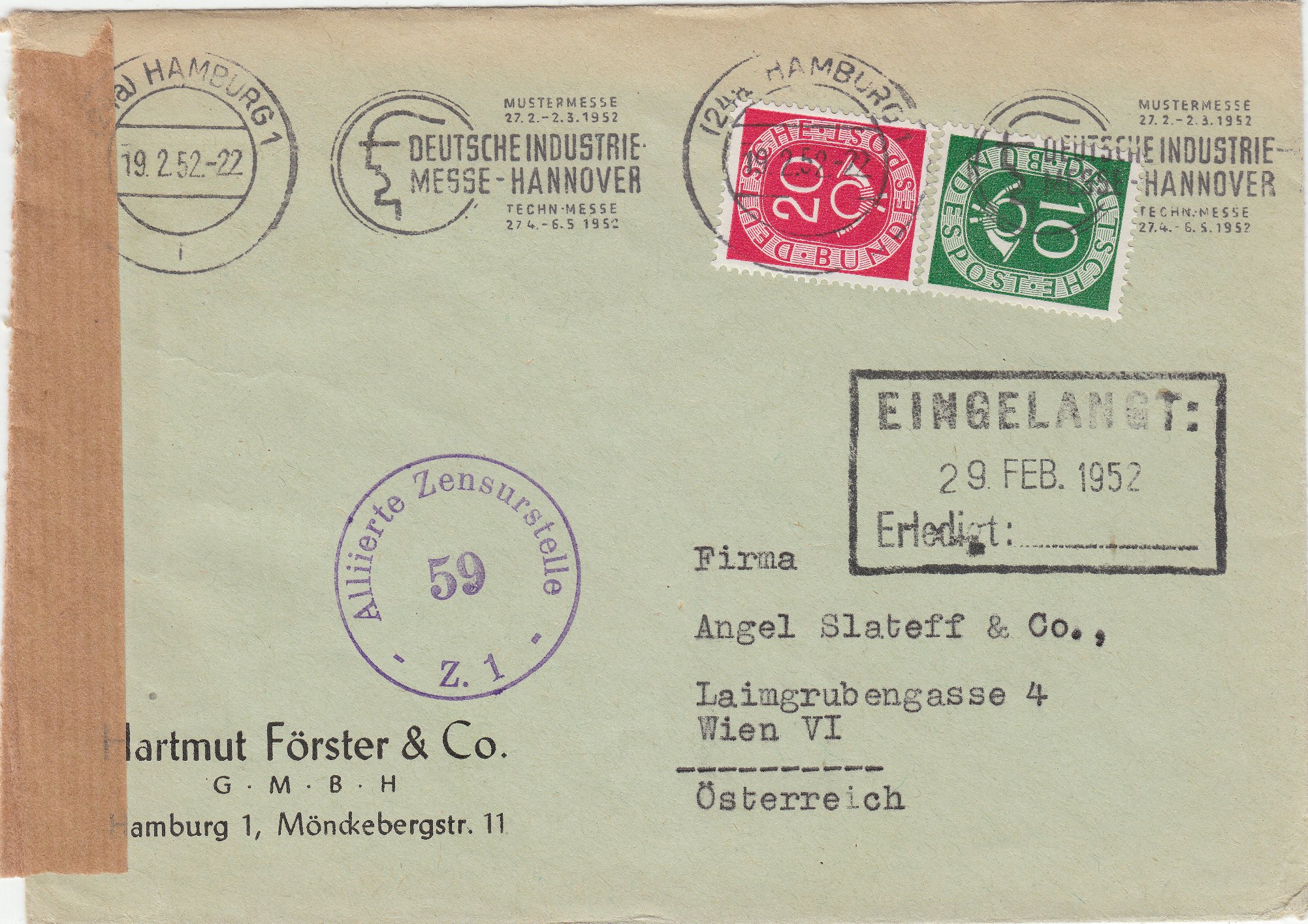 Dieser Brief wurde am 19.02.1952 in Hamburg adressiert nach Wien aufgegeben. In Wien angekommen wurde der Beleg in der sowjetischen Zensurstelle 6 beim Postamt Wien 76 linksseitig geöffnet und zensuriert.
