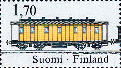 Eine weitere Marke aus Finnland (MiNr 1019) zeigt den Bahnpostwagen Nr. 9991.