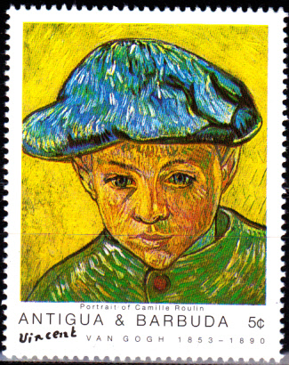 Antigua & Barbuda verausgabte ebenfalls zum 100. Todestag von Vincent van Gogh eine Serie mit Marken und Blöcken. Hier zeige ich die MiNr. 1495 mit einem seiner Werke "Porträt von Camille Roulin". Van Gogh portraitierte die ganze Familie des Postmannes Joseph Roulin mehrfach.