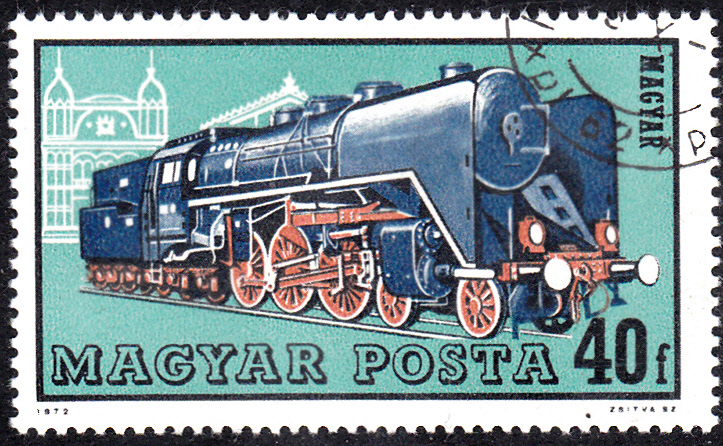 Im Hintergrund dieser Marke aus Ungarn (MiNr 3158 A) wird die Station Kapuvár auf der Eisenbahnlinie Raab-Ödenburg (Györ-Sopron) gezeigt.