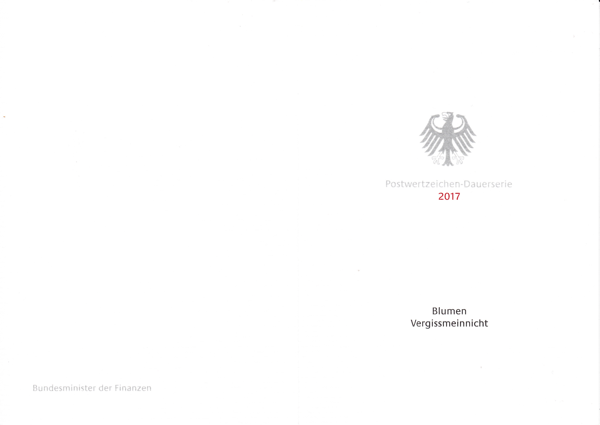 Ministerkarte des Finanzminister mit der 345 Cent-Marke mit dem Motiv "Vergissmeinnicht" (MiNr 3324) aus der Serie "Blumen" vom Ausgabetag 10. August 2017 und mit dem Ersttagsonderstempel Berlin.