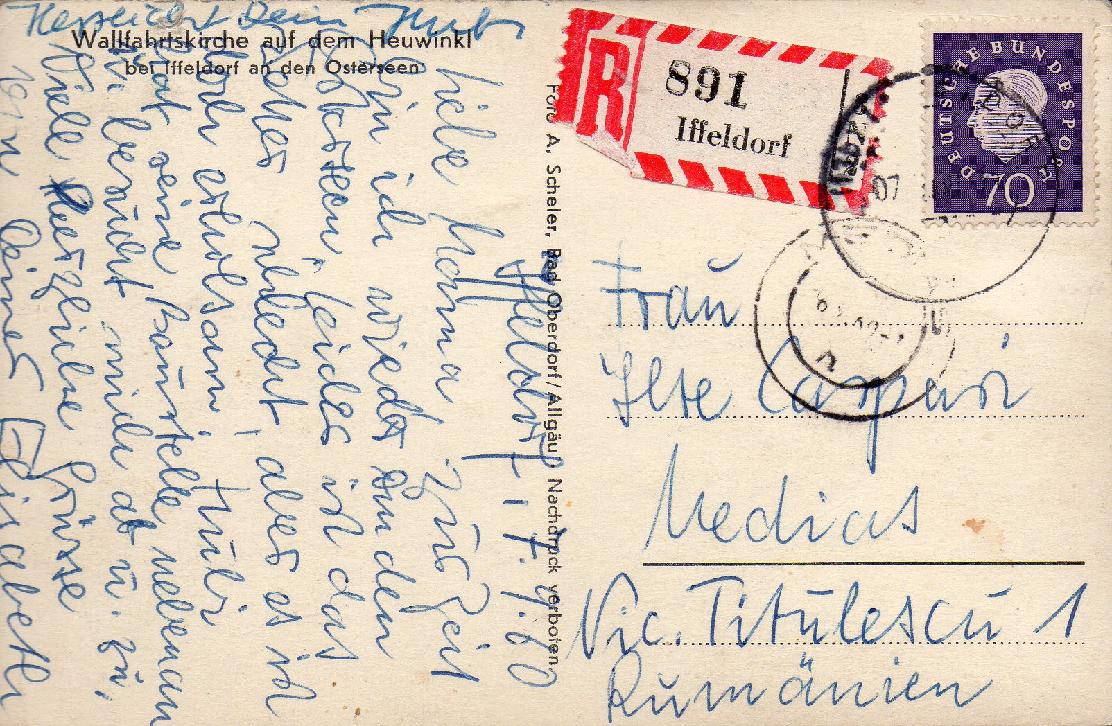 Postkarte per Einschreiben aus Iffeldorf nach Rumänien