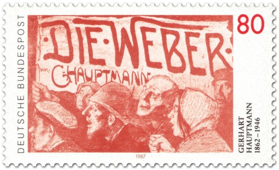 Hier als Beispiel ein Postwertzeichen mit der Darstellung des Plakats "Die Weber":