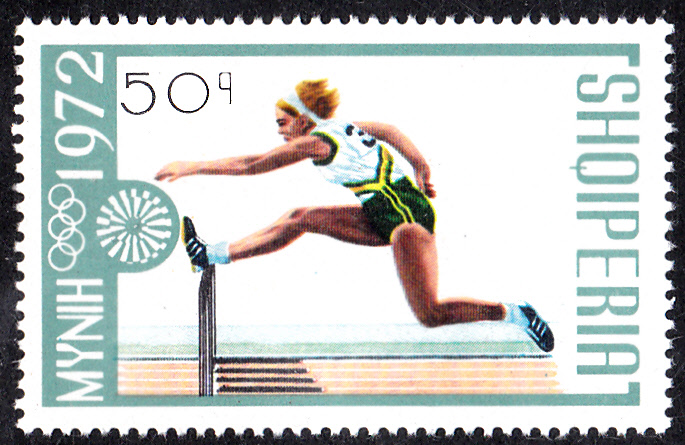 Albanien beteiligte sich an den Spielen 1972 in München mit insgesamt 5 Athleten. Auch in Albanien erschienen zwei Markenserie aus Anlass der Olympischen Spiele 1972. Hier eine Marke (MiNr 1556) mit einem Hochspringer.