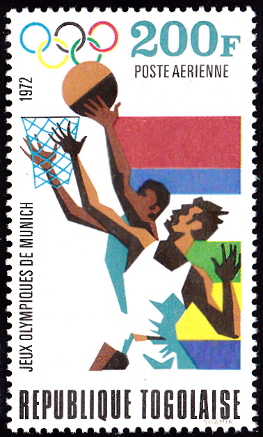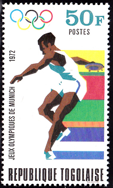 Auf einer Marke (MiNr 1074) zu den Spielen in München wird in den Farben der Olympischen Ringe je ein Piktogramm für den Radsport gezeigt.