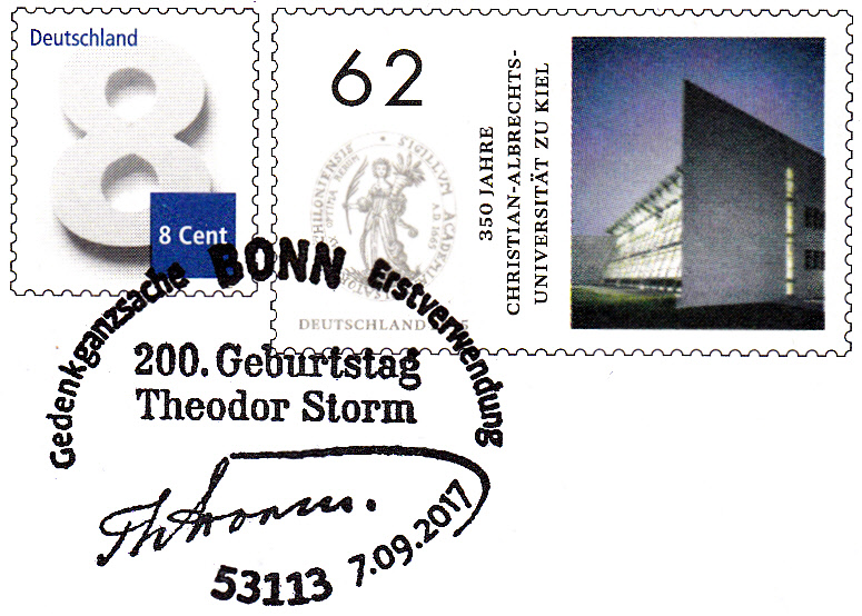 Zum 100. Todestag erschien bei der Deutschen Bundespost eine Sondermarke (MiNr 1371) mit einem Porträt von Theodor Storm.