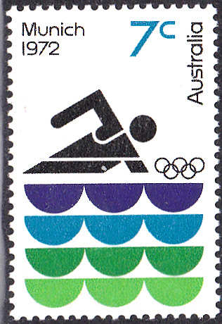 Die Marken der Serie aus Australien zeigen symbolische Darstellungen verschiedener Sportarten. Hier auf dieser Marke (MiNr 499) wird die Sportart "Laufen" dargestellt.