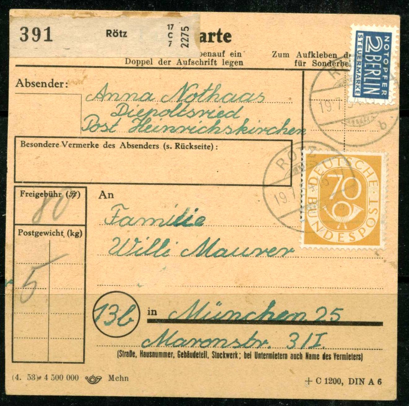 Philatelistisch "normal" wäre dabei selbstverständlich gewesen, als Frankatur für diesen Beleg eine 4 Pf Marke der Posthornserie zu nehmen und nicht, wie hier geschehen, eine 4 Pf Marke der Bautenserie!???
