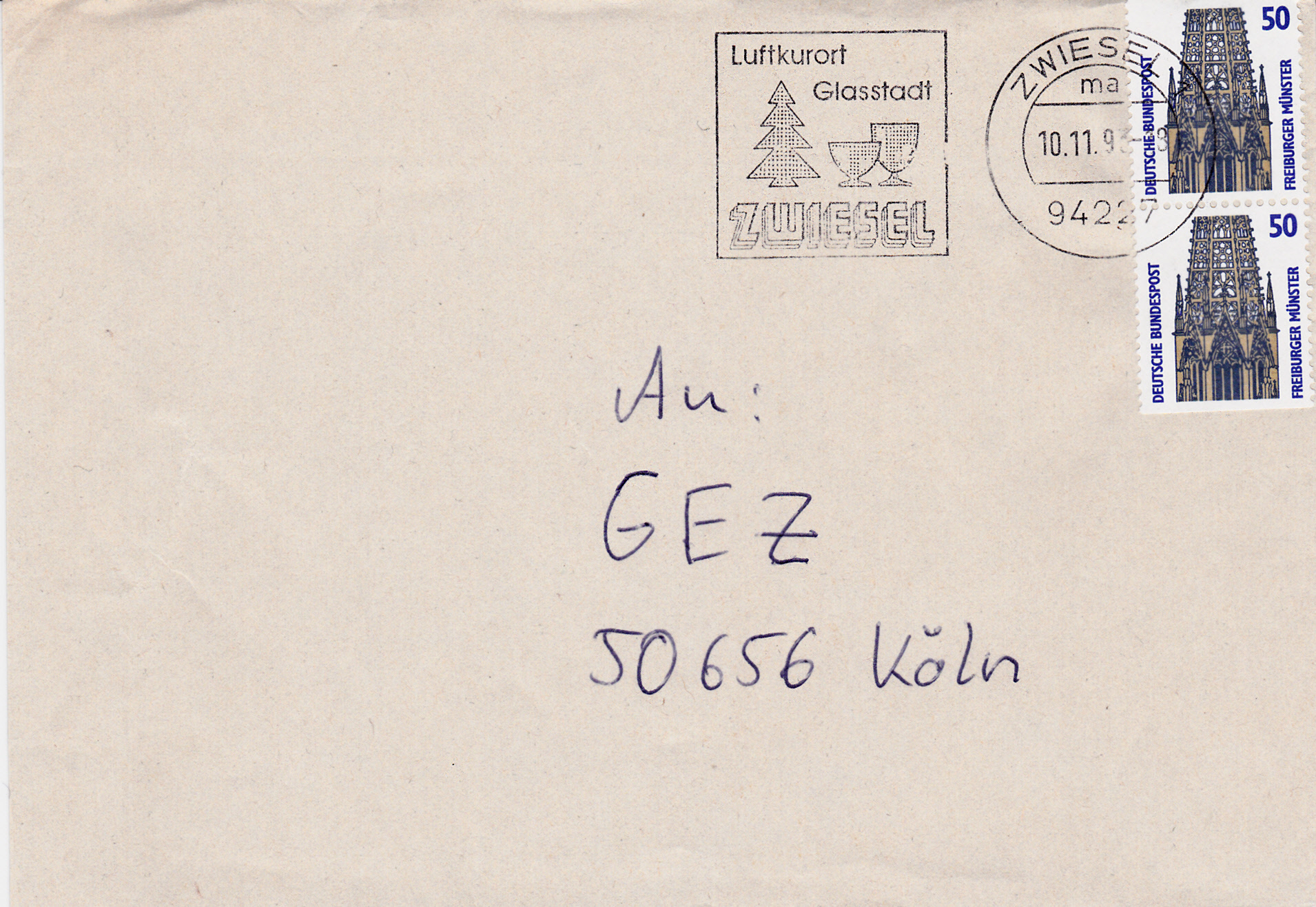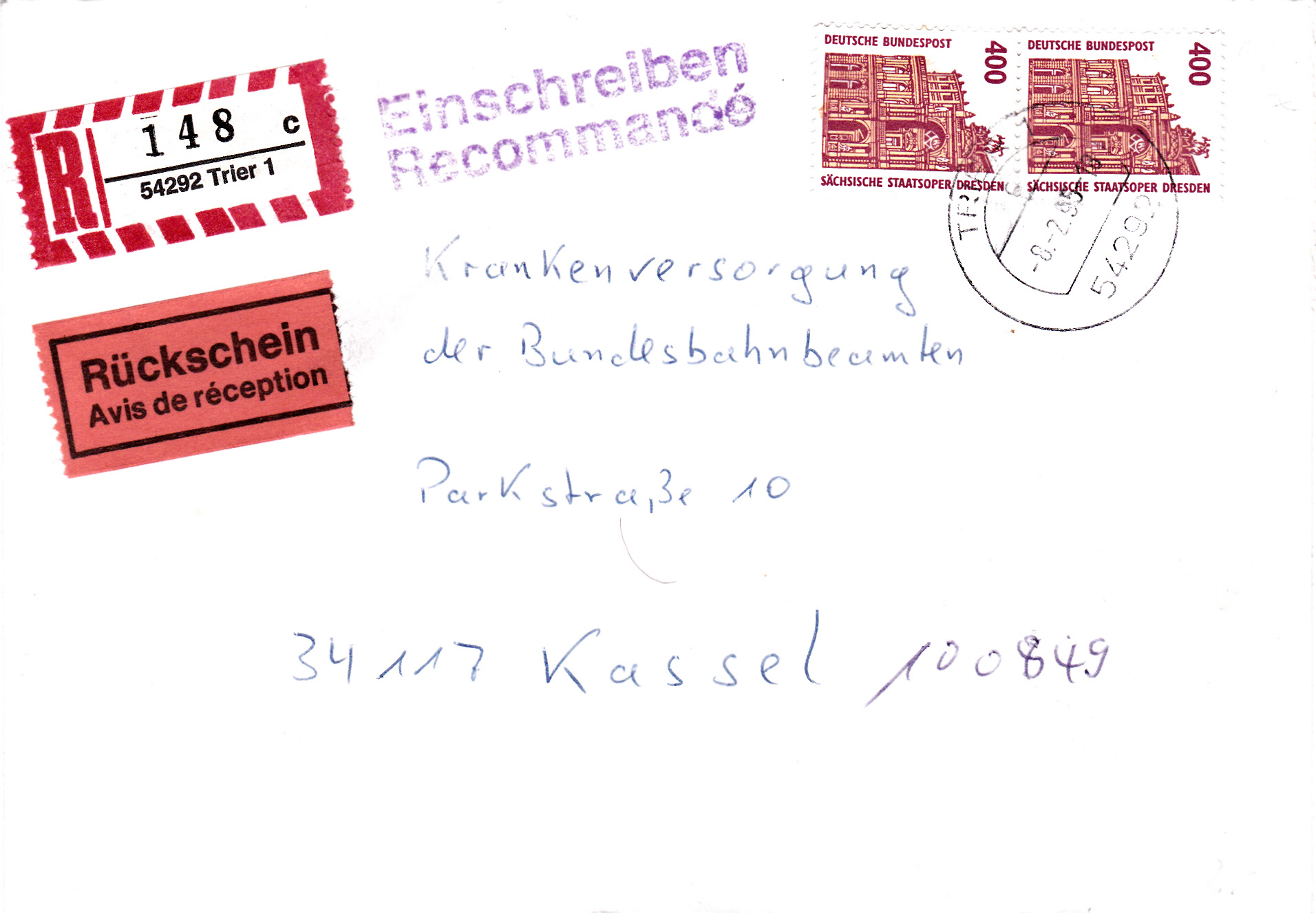 Ein Standardbrief bis 20 Gramm innerhalb der Bundesrepublik kostete in der Zeit von 1.4.1989 bis zum 31.8.1997 100 Pfennige.