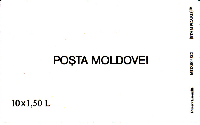 Hier zeige ich eine am 24.10.1995 in Moldawien erschienene Stampcard. Diese Konfektionierungsform wurde von einer schwedischen Firma mit dem Namen "PostLine (International) AB" entwickelt und verschiedenen Postverwaltungen unter dem Namen "STAMPCARD TM" angeboten. Die Stampcards haben die Größe der damals häufig benutzten Telefonkarten und konnten somit auch über die gleichen Automaten verkauft werden. Die Stampcard enthält 10 selbstklebende Marken (MiNr 183). Die Marken sind von 1 bis 10 nummeriert und die Farbe blau wird von links oben nach rechts unten immer intesiver. Es sind daher eigentlich zehn verschiedene Marken mit nur einer MiNr. Es gibt hierzu auch noch einen zweiten Wert (MiNr 182) mit gleichem Motiv zu 0,90 L statt 1,50 L. Beim hier gezeigten Exemplar handelt es sich um eine Musterkarte, erkennbar am Aufdruck "Specimen" in den beiden senkrechten Streifen.