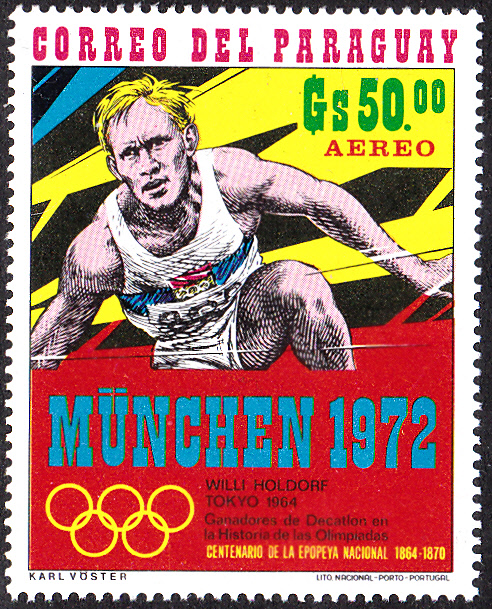 Diese Marke (MiNr 2148) mit Willi Holdorf, dem Olympiasieger im Zehnkampf bei den Spielen 1964 in Tokio, beendet diese Serie aus Paraguay.