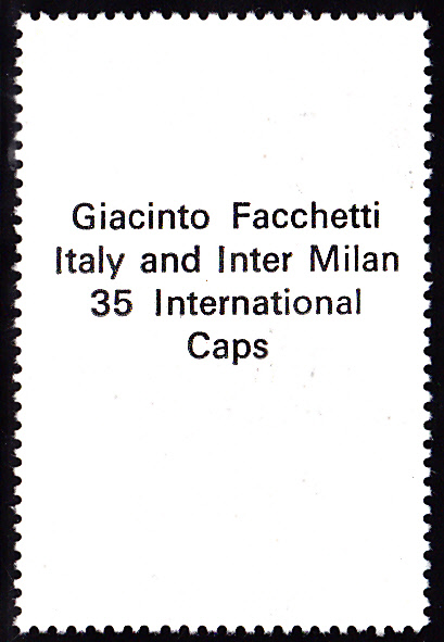 Auf der Markenrückseite ist ein kurzer Text zu Giacinto Facchetti zu lesen: