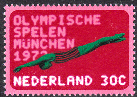 Zu den Spielen in München ist in den Niederlande eine Marke (MiNr 992) mit einer Schwimmerin beim Startsprung erschienen.