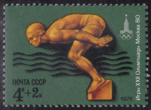 Ein weiterer Schwimmer wartet auf diesem Startblock einer Marke der Sowjetunion (MiNr 4707) auf den Startschuss.