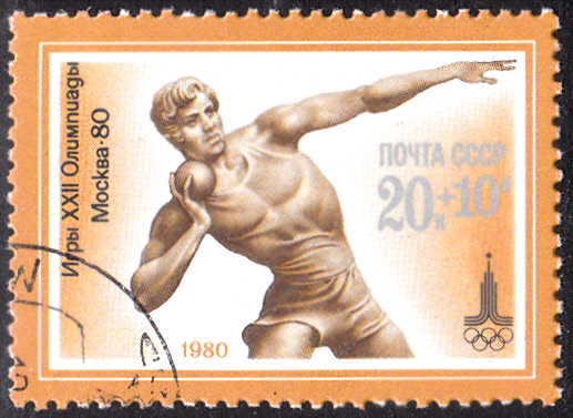 Auch die bisher hier noch nicht gezeigte fünfte Marke der 14. Serie der Sowjetunion (MiNr 4936) füge ich hier an. Die Marke zeigt einen Kugelstoßer.