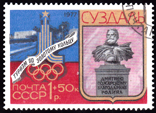 Eine weitere Marke dieser Serie (MiNr 4689) zeigt das Dmitrij-Poscharskij-Denkmal und das Haus des Tourismus in Susdal.