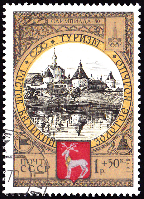 Aus einer dritten Serie, die ebenfalls 1978 erschien, stammt diese Marke (MiNr 4810) mit dem Denkmal für Zar Peter den Großen in Pereslawl-Salesskij, einem Anker und dem Stadtwappen von Pereslawl-Salesskij.