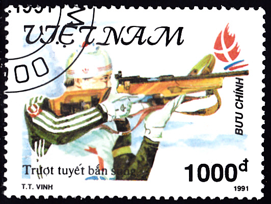 In Vietnam ist zu den Winterspielen 1992 diese Marke Marke (MiNr 2355) mit einem Biathleten beim Stehendschießen erschienen.