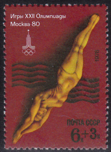 Auch auf dieser Marke der Sowjetunion (MiNr 4708) wird eine Wasserspringerin abgebildet.