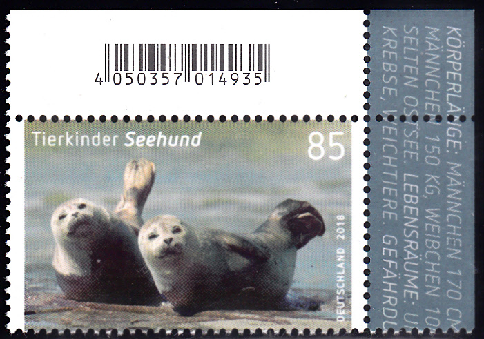 Bei der Deutschen Post erschien am 2.1.2018 in der Serie "Tierbabys" diese Marke mit zwei jungen Seehunden (MiNr 3353).