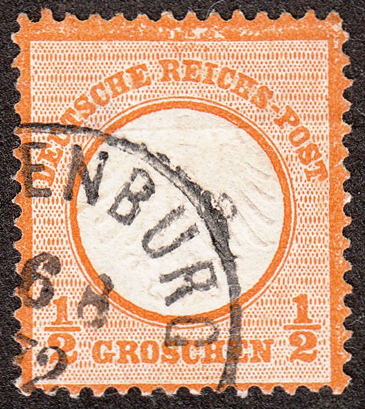 Heute eine nach links dezentrierte MiNr. 18 mit "Brustschildfuge" im rechten Rahmen, entwertet am 06.12.1872 per nachverwendetem preussischem Zweikreisstempel POSEN: