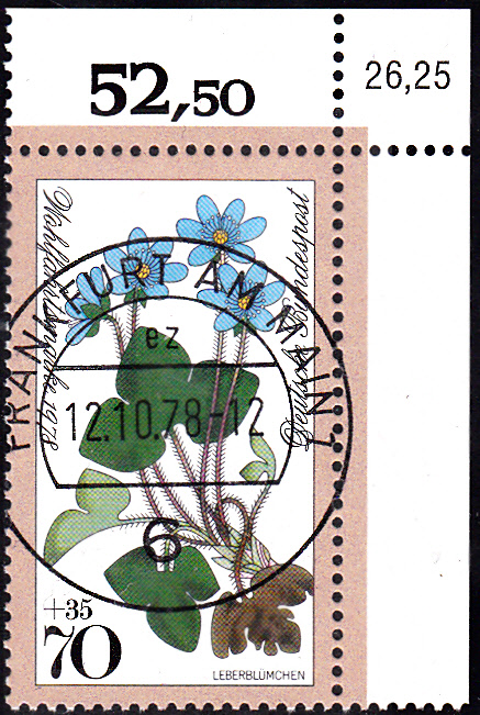 Vor längerer Zeit wurden hier schon mal Eckrandstücke der Versandstelle mit korrigierter Bogenwertzahl vorgestellt. Hier einige weitere Stücke, bei denen sich der Bogenwert durch die nicht mehr zum Verkauf geeigneten Marken mit minimalen "Stempelbestandteilen" auf jeweils die Hälfte reduziert hat. Es handelt sich um einen Satz der Wohlfahrtsmarken 1978 mit Waldblumen.