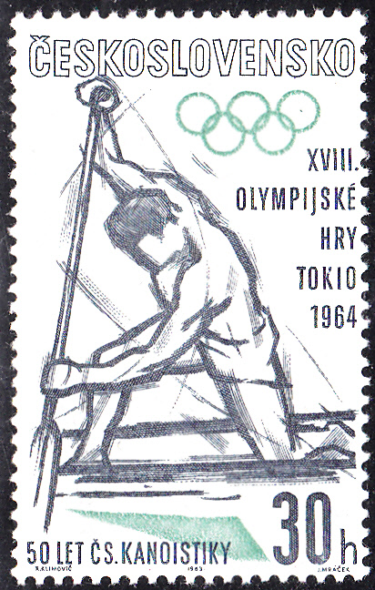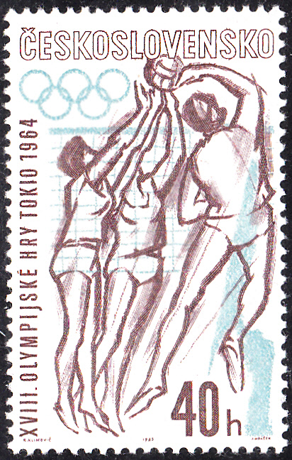 In San Marino ist 1963 bereits eine Markenserie zu den Olympischen Spielen 1964 in Tokio erschienen. Hier die Marke zu 1 Lira (MiNr 782) mit der Abbildung von zwei Hürdenläuferinnen.