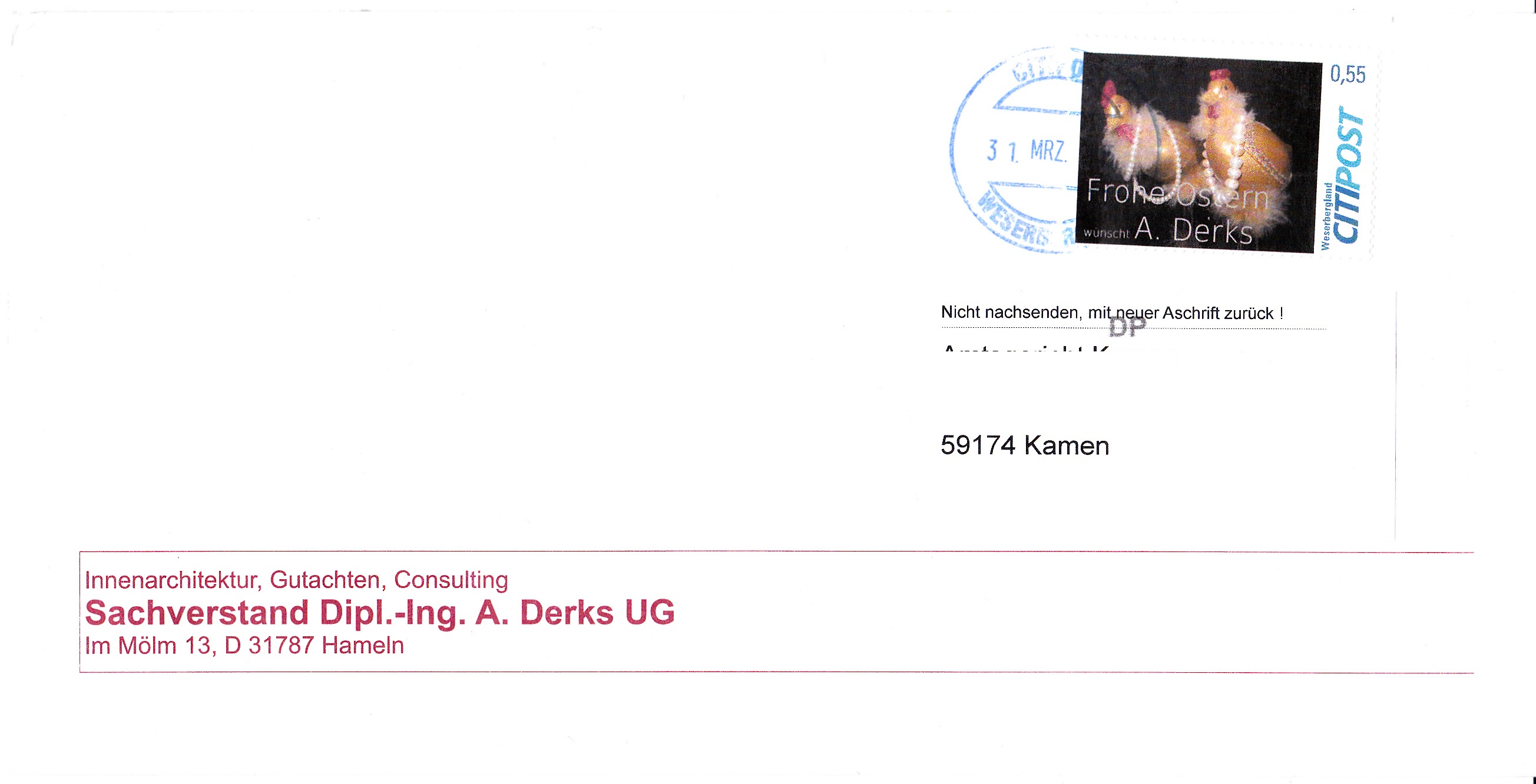 65€ gleich geblieben. Allerdings wurde der Brief vermutlich von der City-Post mit einem Freistempel der Deutschen Post zur Beförderung übergeben.