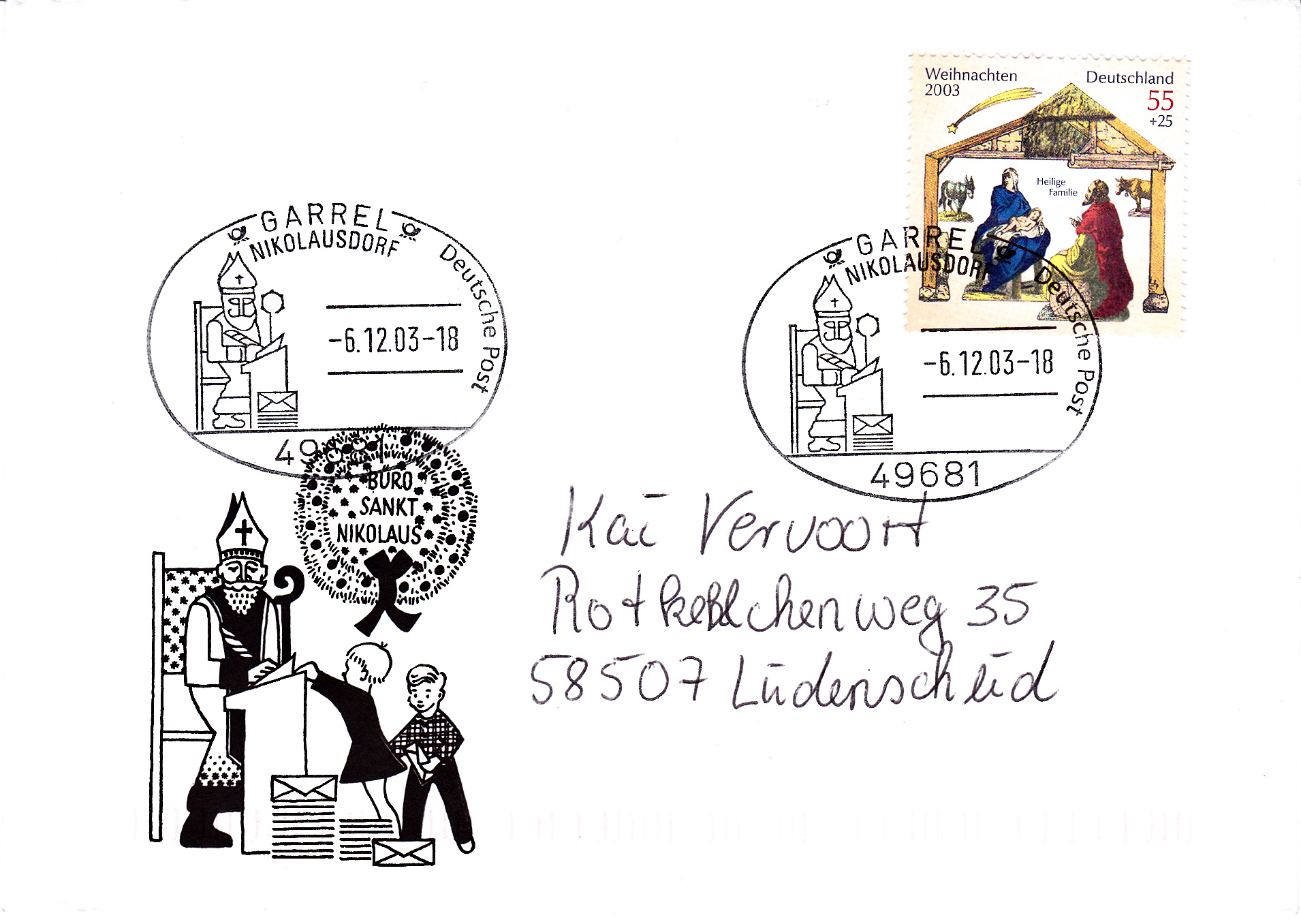 Der Sonderstempel aus Garrel Nikolausdorf von 2005 (siehe zwei Beiträge vorher) war auch bereits im Jahre 2003 im Einsatz, wie dieser Abschlag zeigt.
