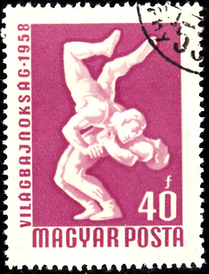 Zu den Ringerweltmeisterschaften 1958 ist in Ungarn diese Marke (MiNr 1544 A) mit einer Kampfszene erschienen.