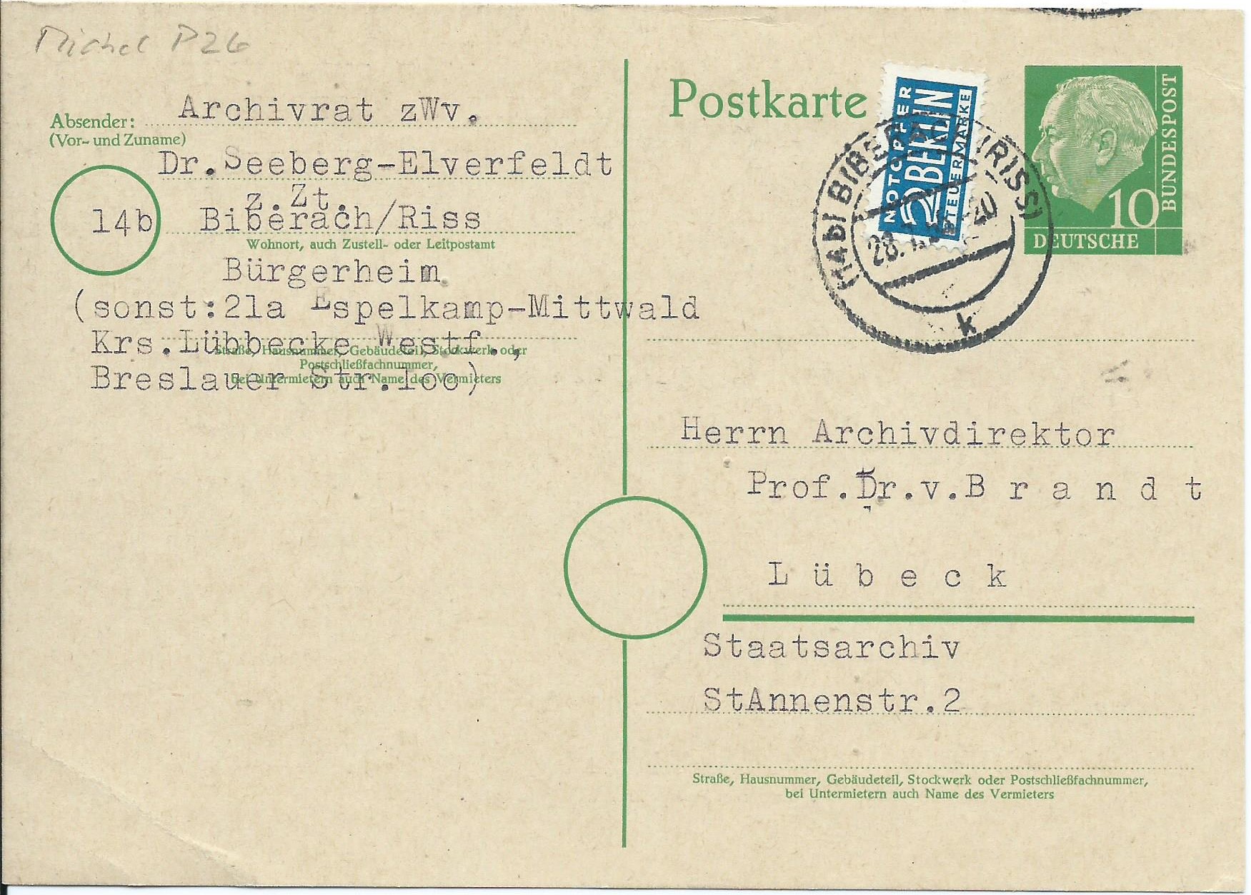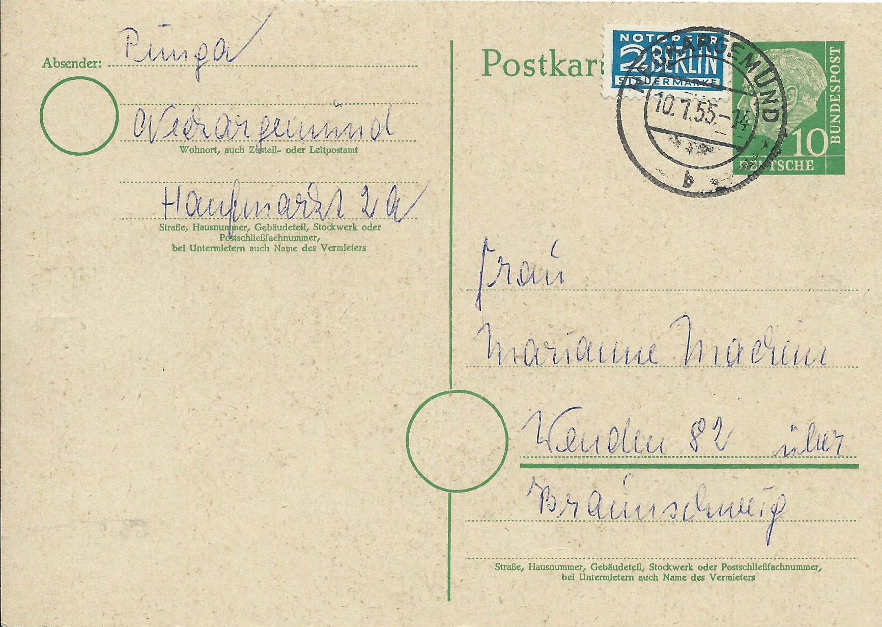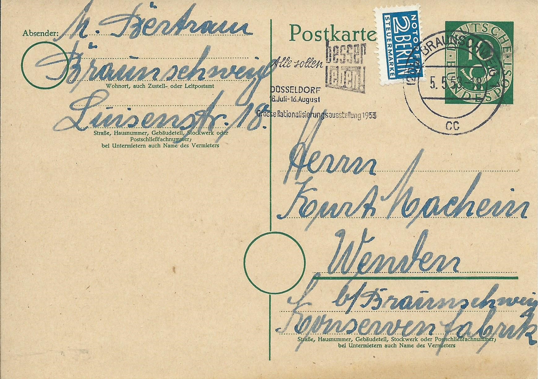 Dann noch eine mit gleichem Wertstempel, abgeschickt in Kirchheim am 27.11.52.