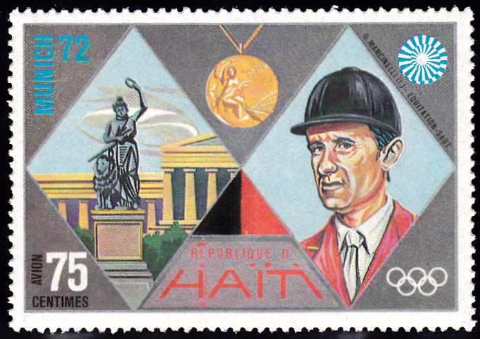 Auch Graziano Mancinelli, der bereits erwähnt Goldmedaillengewinner beim Springreiten, wird auf einer Marke aus Haiti (MiNr 1211) gezeigt.