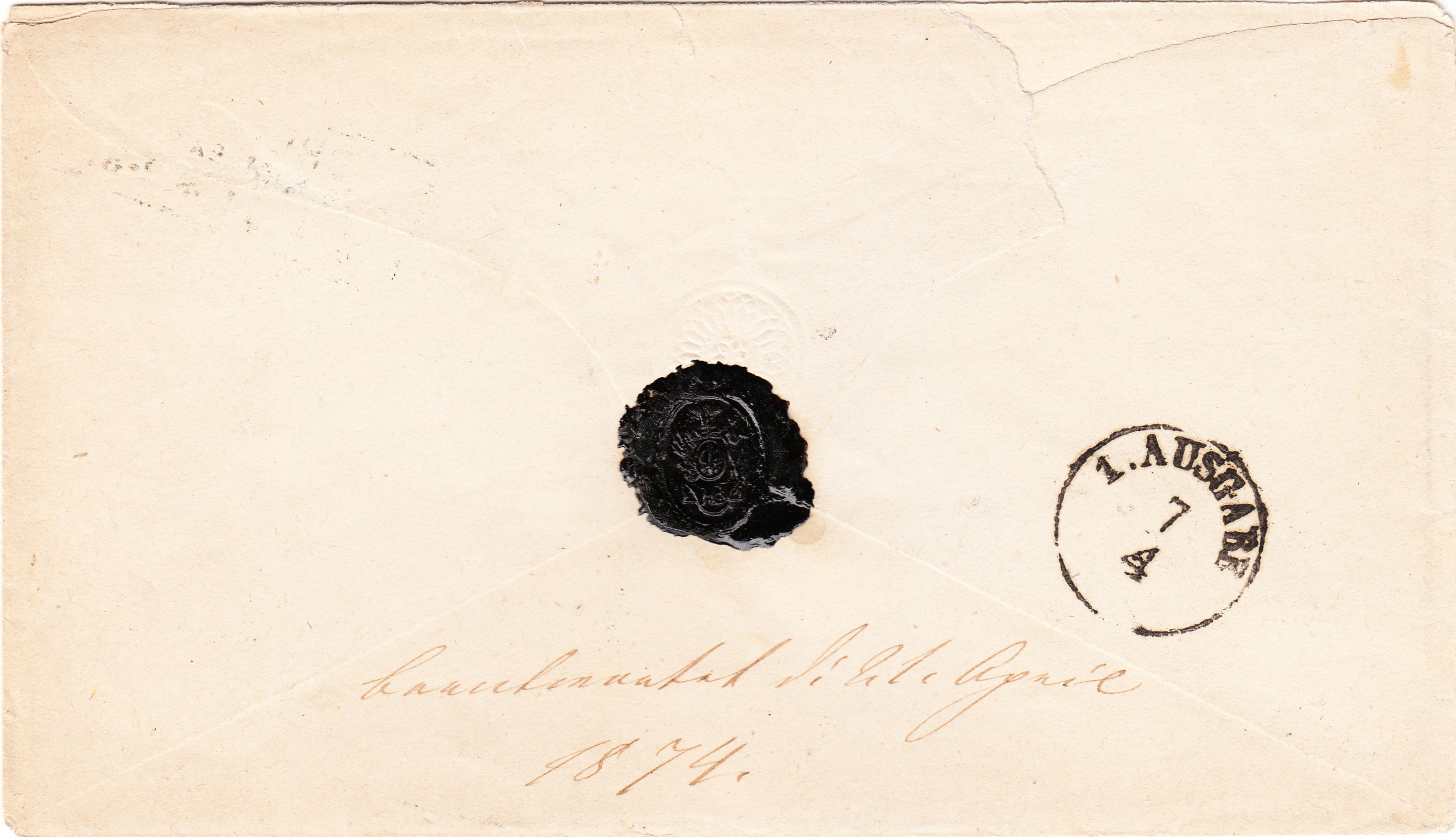 Dieser Beleg vom 28.08.1874 zeigt einen nachverwendeten NDP-Kreisstempel HILDBURGHAUSEN, katalogisiert als Feuser NDP 488: