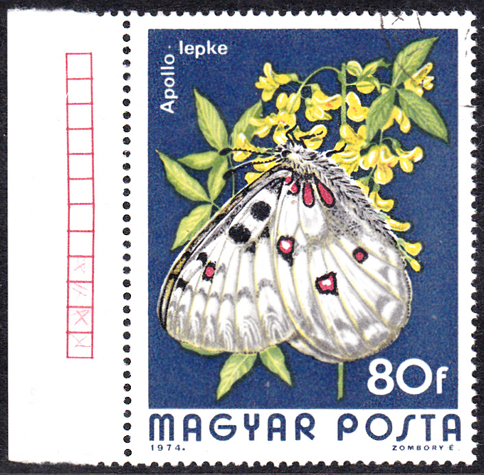 Auch in Ungarn gibt es eine Marke (MiNr 2996 A) mit einem Apollofalter (Parnassius Apollo).