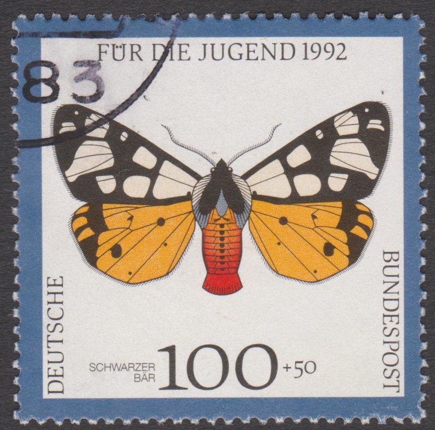 Die Jugendmarken der Deutschen Bundespost zeigten 1992 gefährdete Nachtfalter. Auf der Marke zu 100+50Pf (MiNr 1605) wurde ein Schwarze Bär (Arctia villica) abgebildet.