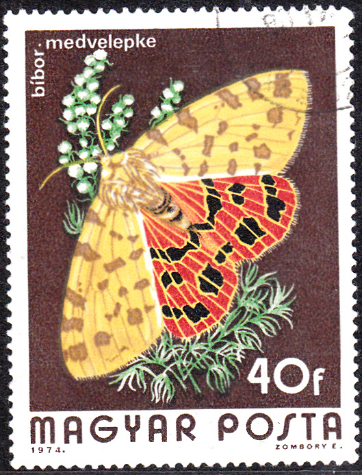 Hier eine Marke aus Ungarn (MiNr 2994 A) mit einem Purpurbär (Rhyparia purpurata).