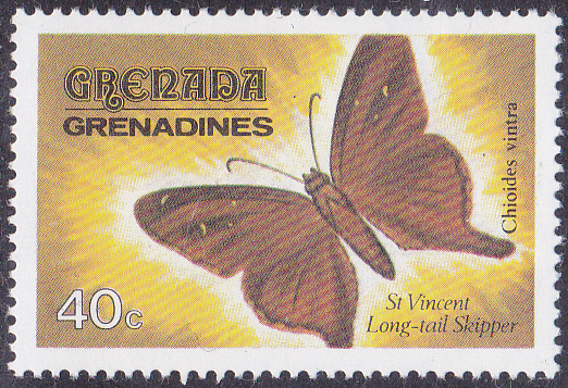 Auf einer Marke aus Grenada/Grenadinen (MiNr 491) wird ein Chioides vintra gezeigt.