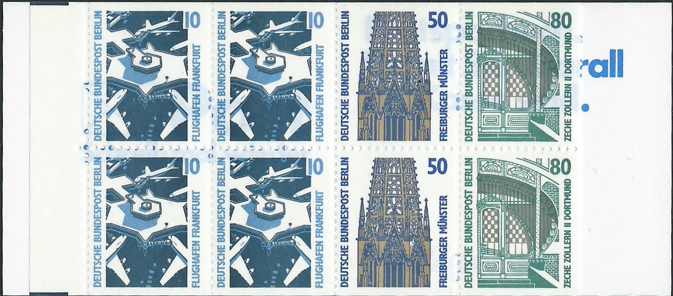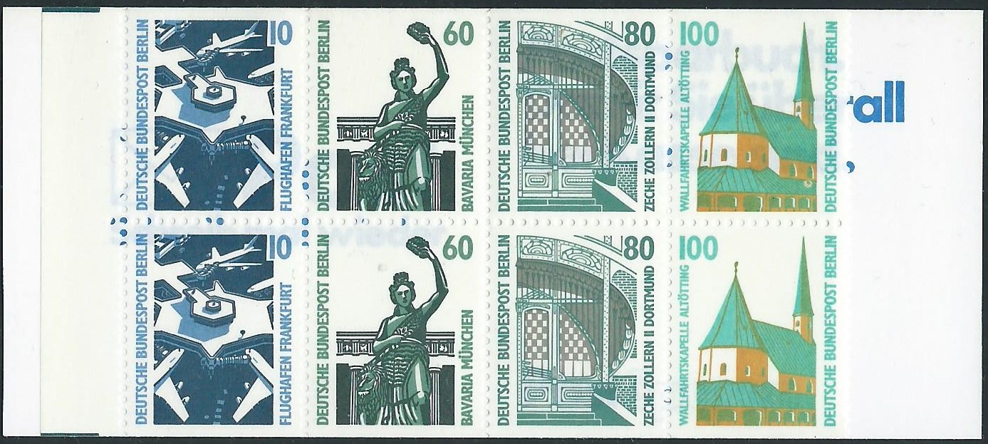 von der Serie Sehenswürdigkeiten gab es auch 2 Markenheftchen (MH). Es sind dies die Michel-Nummern 14 für das Heftchen zu 3 DM mit dem einliegenden Heftchenblatt 22 und 15 für das Heftchen zu 5 DM mit dem einliegenden Heftchenblatt 23.