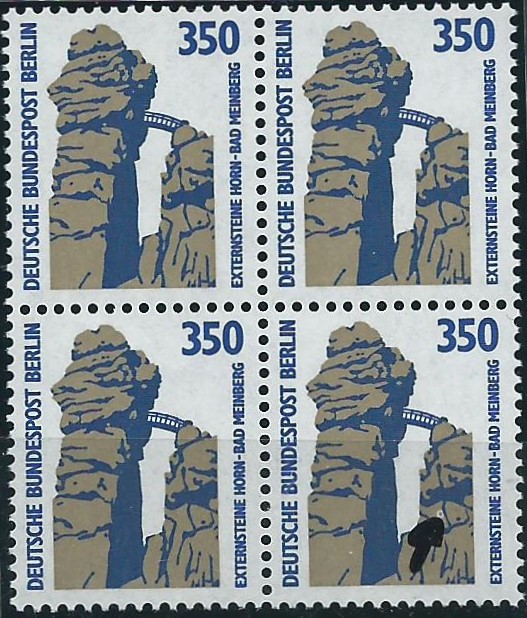 Dieser als Einschreiben per Eilzustellung echt gelaufene FDC ist als Portostufe eines Briefes im Fernverkehr von 21 bis 50 g (130 Pf), per Einschreiben (200 Pf) sowie Eilzustellung (350 Pf) mit 700 Pf als MeF mit zwei Werten zu 350 Pf der Dauerserie SWK, Ausgabe Berlin, einmal von der Rolle sowie einmal vom Bogen als Oberrand mit RWZ "210,00", also von Feld 8 stammend, um 20 Pf überfrankiert: