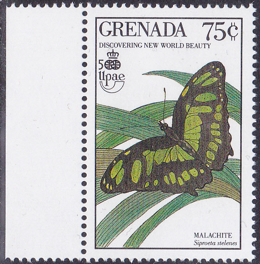Auf dieser Marke aus Surinam (MiNr 629) ist ein Malachitfalter (Siproeta stelenes) abgebildet.