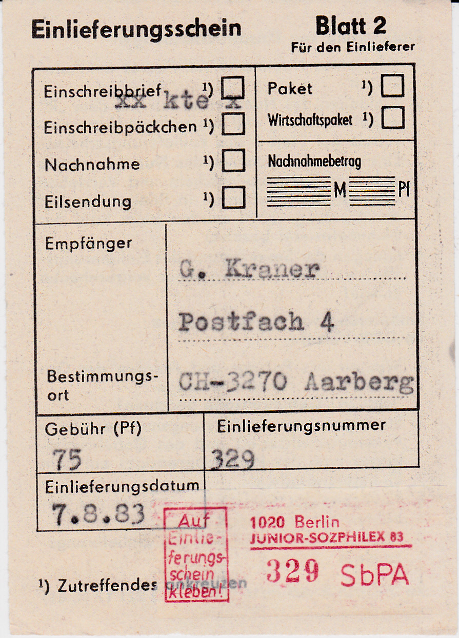 Zu dieser Sendung liegt mir auch der Einlieferungsschein vor: