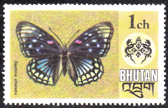 Hier eine Marke aus Bhutan (MiNr 606) mit einem Sephisa chandra.
