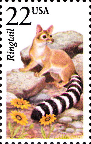 In einer Serie "Nordamerikanische Fauna" ist in den USA auch eine Marke (MiNr 1899) mit einem Nordamerikanische Katzenfrett (Bassariscus astutus) erschienen.
