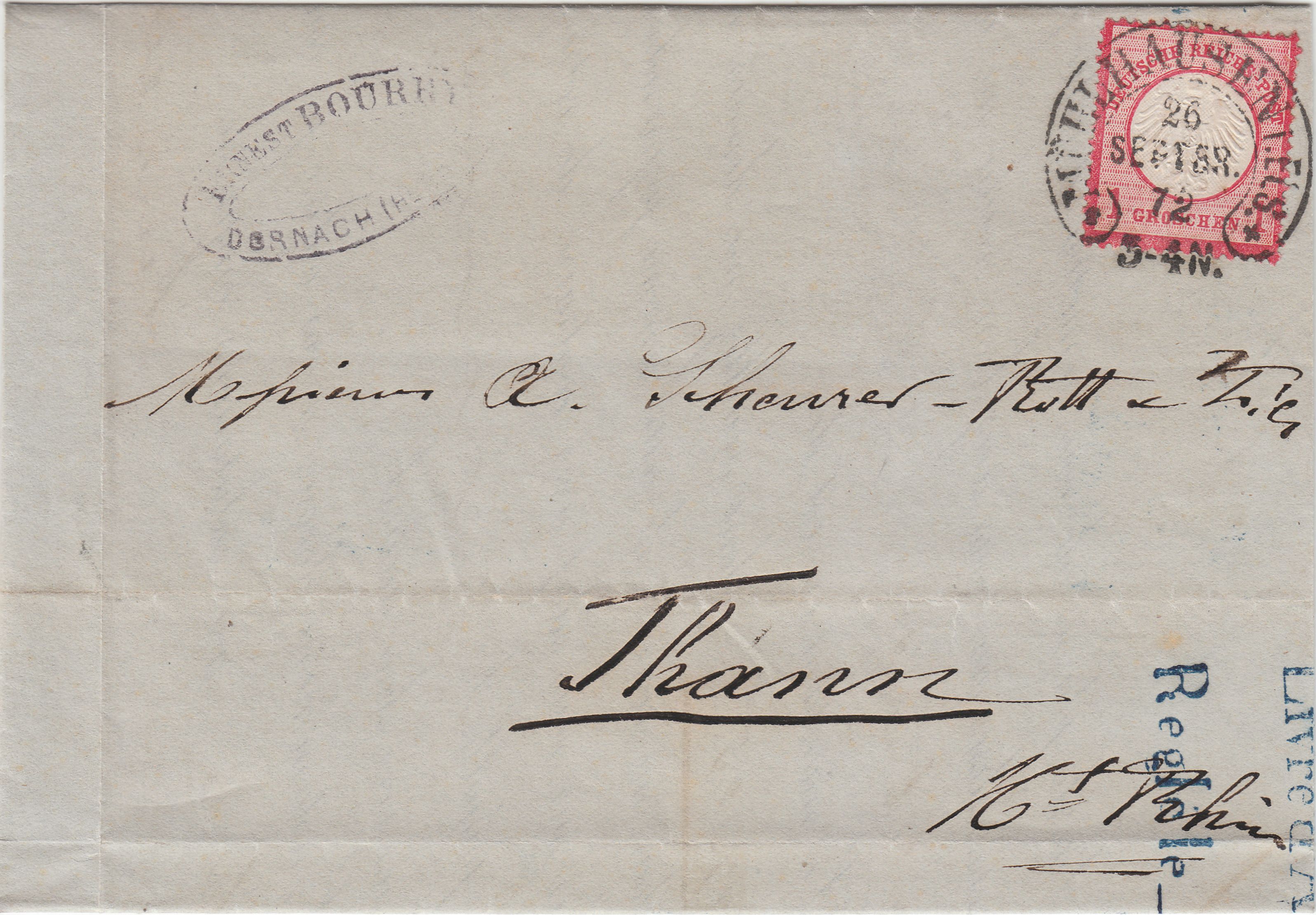 Das Titelfoto zeigt einen Brief per Einschreiben nach Frankreich, frankiert mit einer Mischfrankatur kleiner Brustschild/großer Brustschild, der für 2000 € zum Ausruf kam. Leider war bei diesem Kauf keine Ergebnisliste dabei und ich kann Euch daher nicht sagen, zu welchem Gebot dieser Brief zugeschlagen wurde.