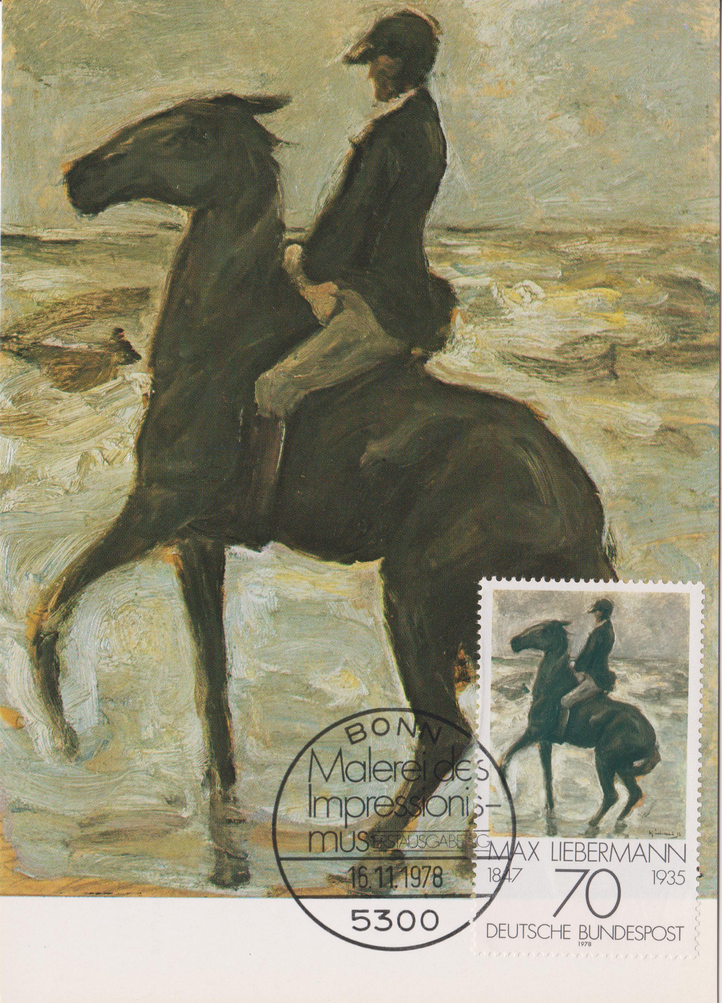 Auf dieser Marke von 1978 aus der Bundesrepublik MiNr. 987 ist der "Reiter -nach links- am Strand" abgebildet. Das Werk entstand 1912.