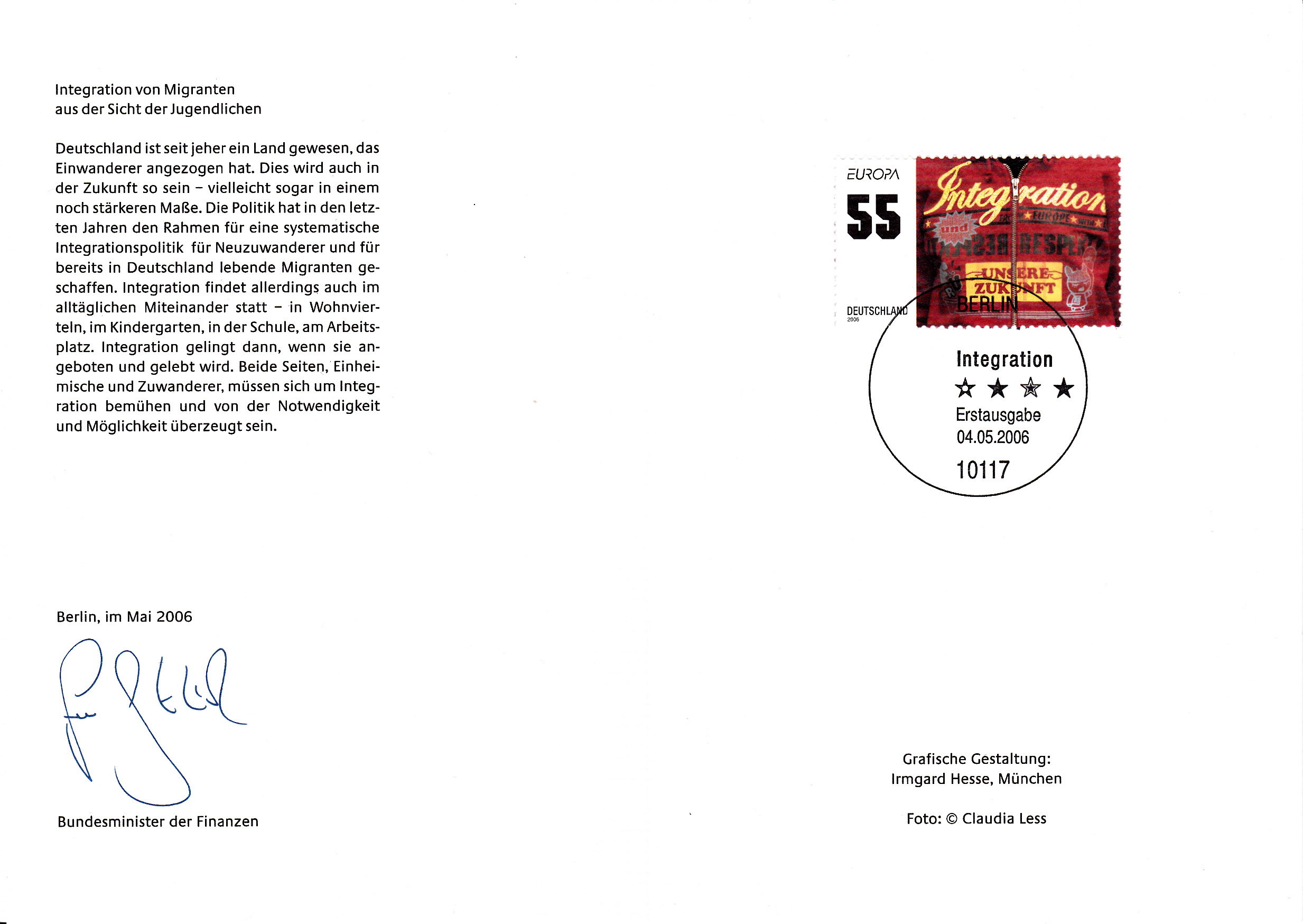 Am 4. Mai 2006 erschien bei der Deutschen Post eine Europamarke 2006 zum Gemeinschaftsthema "Integration". Auf der Marke zu 55 Cent wird die Windjacke eines Jugendlichen gezeigt. Die Auflage der Marke betrug 10 500 000 Stück.