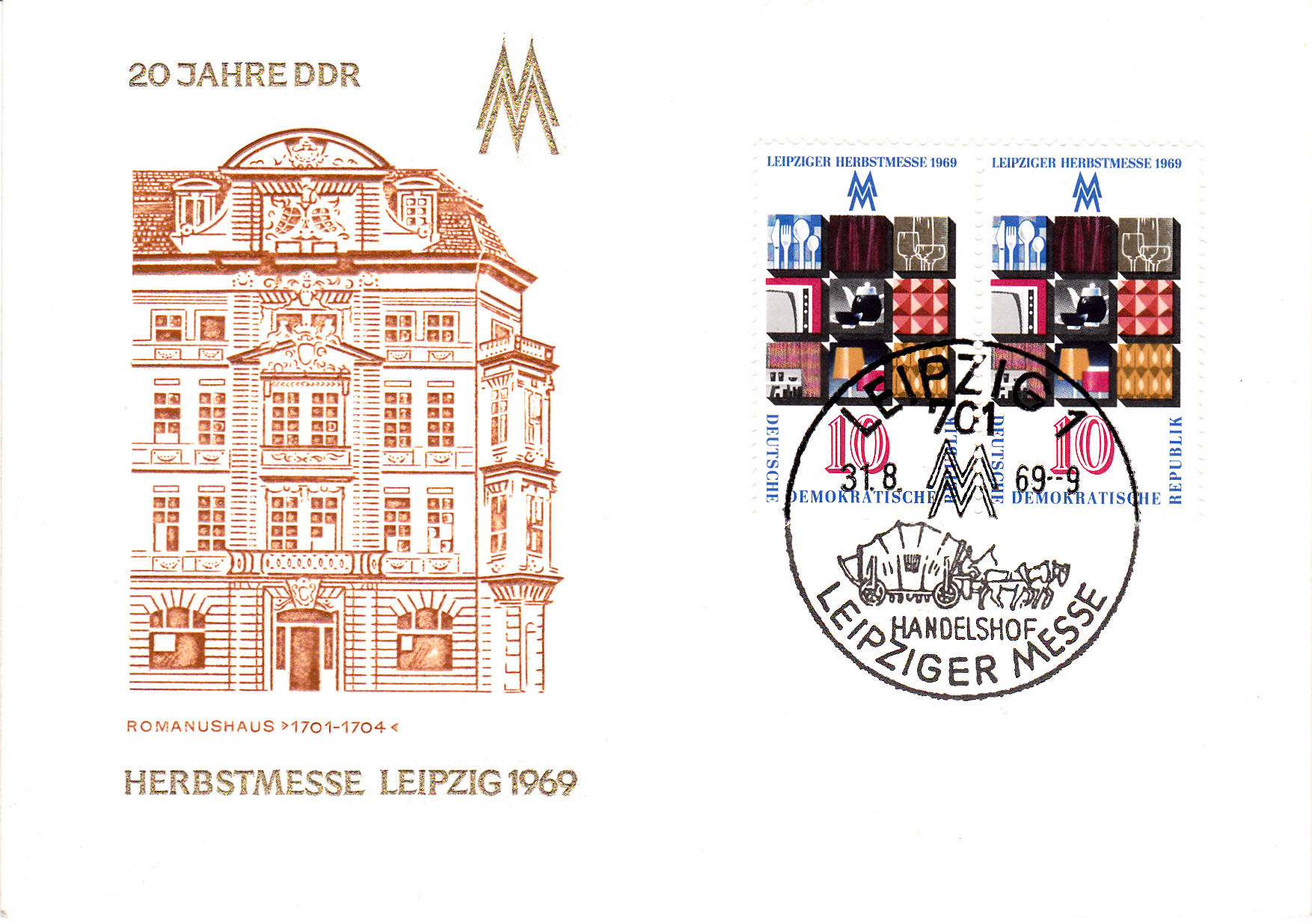 Dieser Brief wurde mit einem waagerechten Paar diese Marke zur Herbstmesse 1969 portogerecht frankiert.
