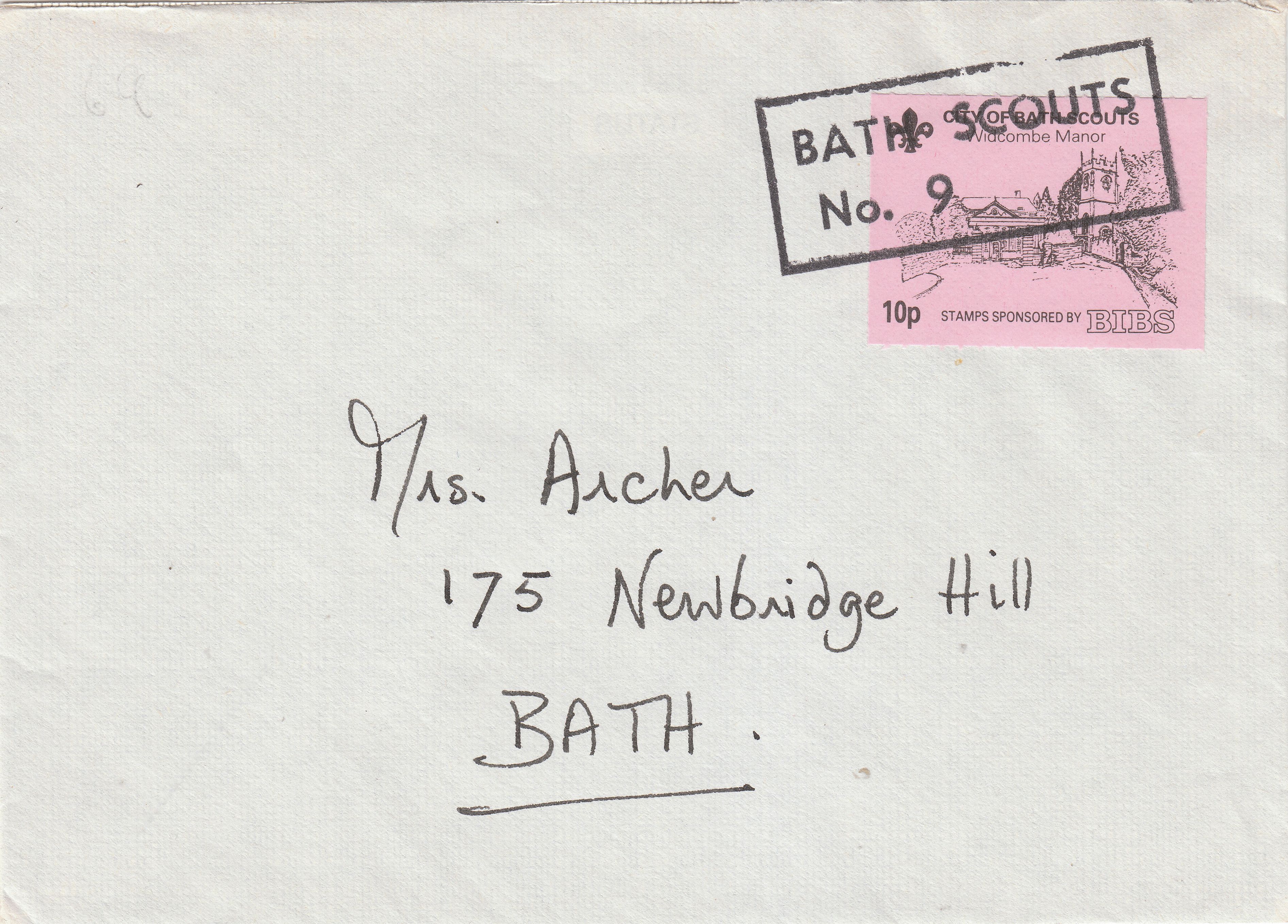 Zum Viertelfinale habe ich aus England hier eine Lokalpostmarke aus Bath auf Brief: