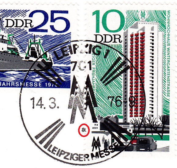Auf dieser Stempelkarte sind wieder beide Marken aufgeklebt und mit einem Sonderstempel vom Eröffnungstag der Messe (14.3.1976) in einem ebenfalls schon früher benutzten Muster, jetzt aber wie bei anderen Stempel auch schon gesehen, mit einem kleinen Unterscheidungsbuchstaben "a".